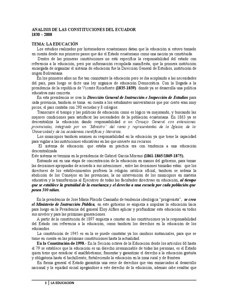 Analisis De Las Constituciones Del Ecuador Docxgobeo